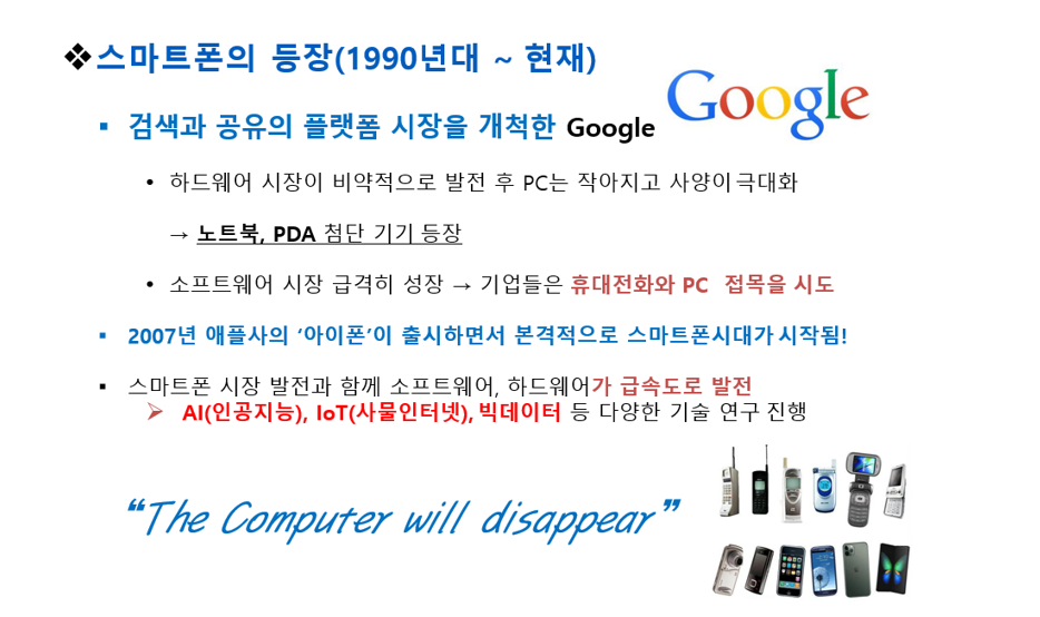 1990년대 이후, 스마트폰의 등장은 컴퓨터 산업에 또 한 번의 혁신적인 변화를 가져왔다.
