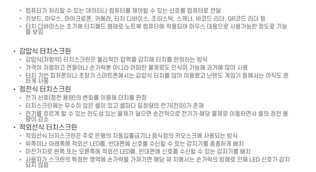 이외 터치 스크린을 들 수 있습니다.
