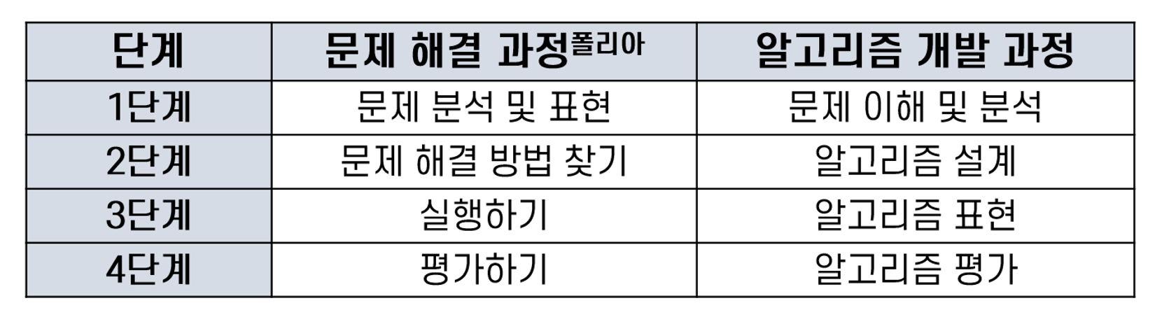 알고리즘의 개발 과정은 폴리아식 문제 해결과정과 비교하면,