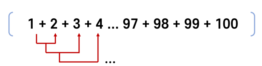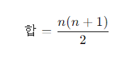 여기서 n은 마지막 숫자이다. 예를 들어, 1부터 100까지의 합을 구할 때,