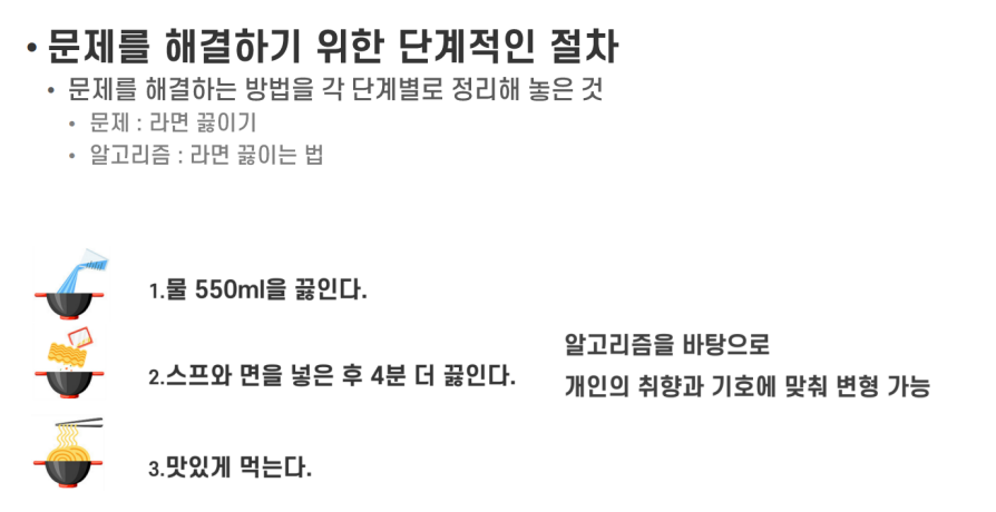 다시 한번 문제 해결을 위한 단계적인 절차, 알고리즘을 정리하면 다음과 같이 정의할 수 있다.