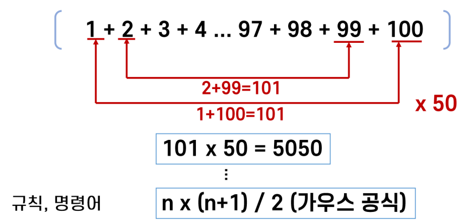 알고르즘 예시 - 1~100까지 합을 구해보자