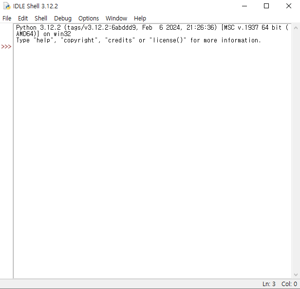 이제 IDLE 에디터를 실행해 보자.