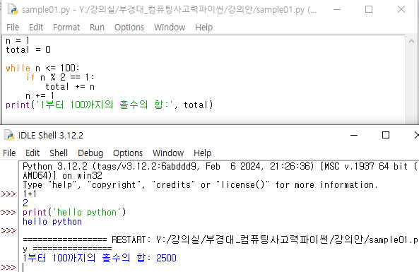 실습 : IDLE 에디터로 파이썬 프로그램 작성하기