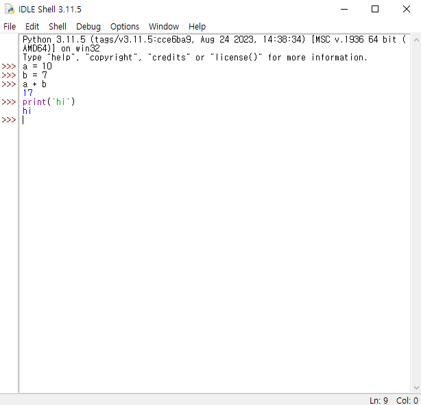 IDLE에서 간단한 계싼 수행 해 보자.