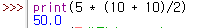 괄호가 포함된 계산 5 * (10 + 10)/2를 수행 해 보자.