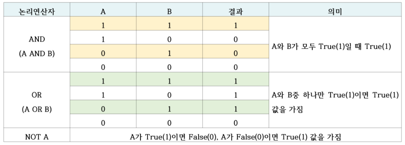 → 왼쪽은 참, 오른쪽은 거짓 → 전체는 참(True)
