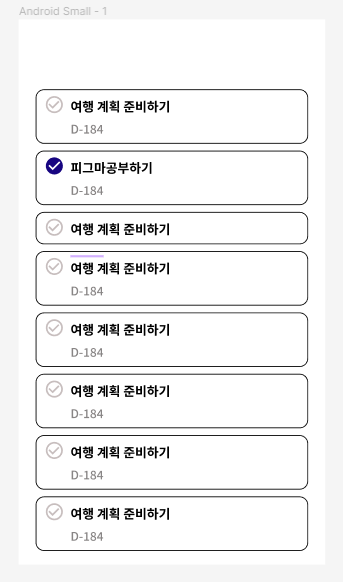 - 체크 버튼 인스턴스와 글자를 작성하여 정렬한다.