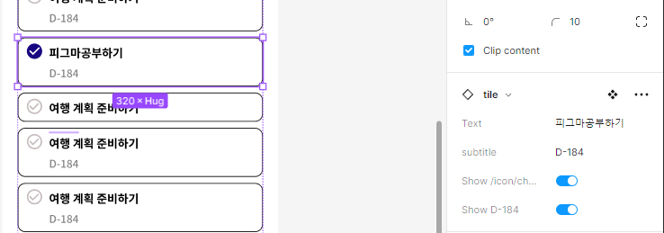 - fill color를 변경하여 on- off 토클형태의 베리언츠를 만들어 본다.