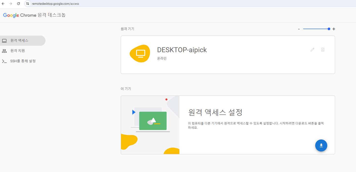 1.원격액세스 설정 : 프로그램 다운로드 (파란색 아이콘)