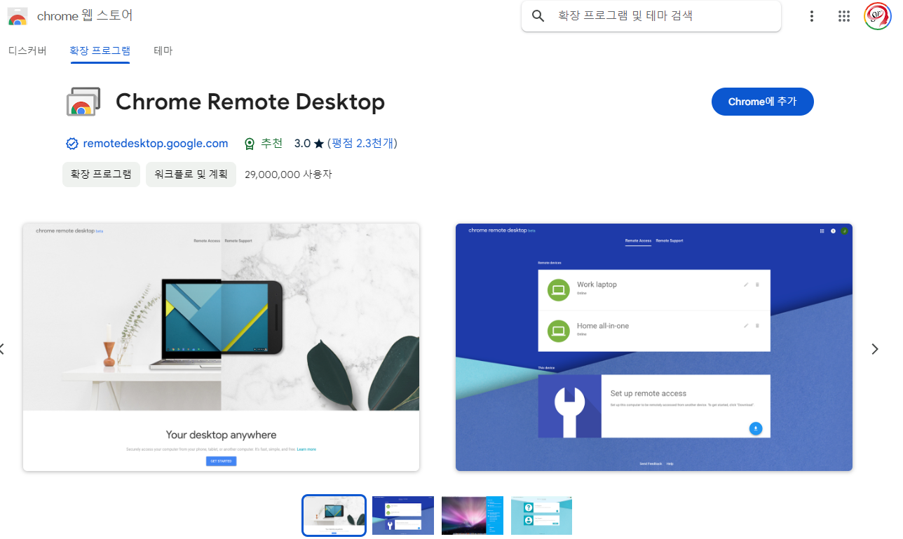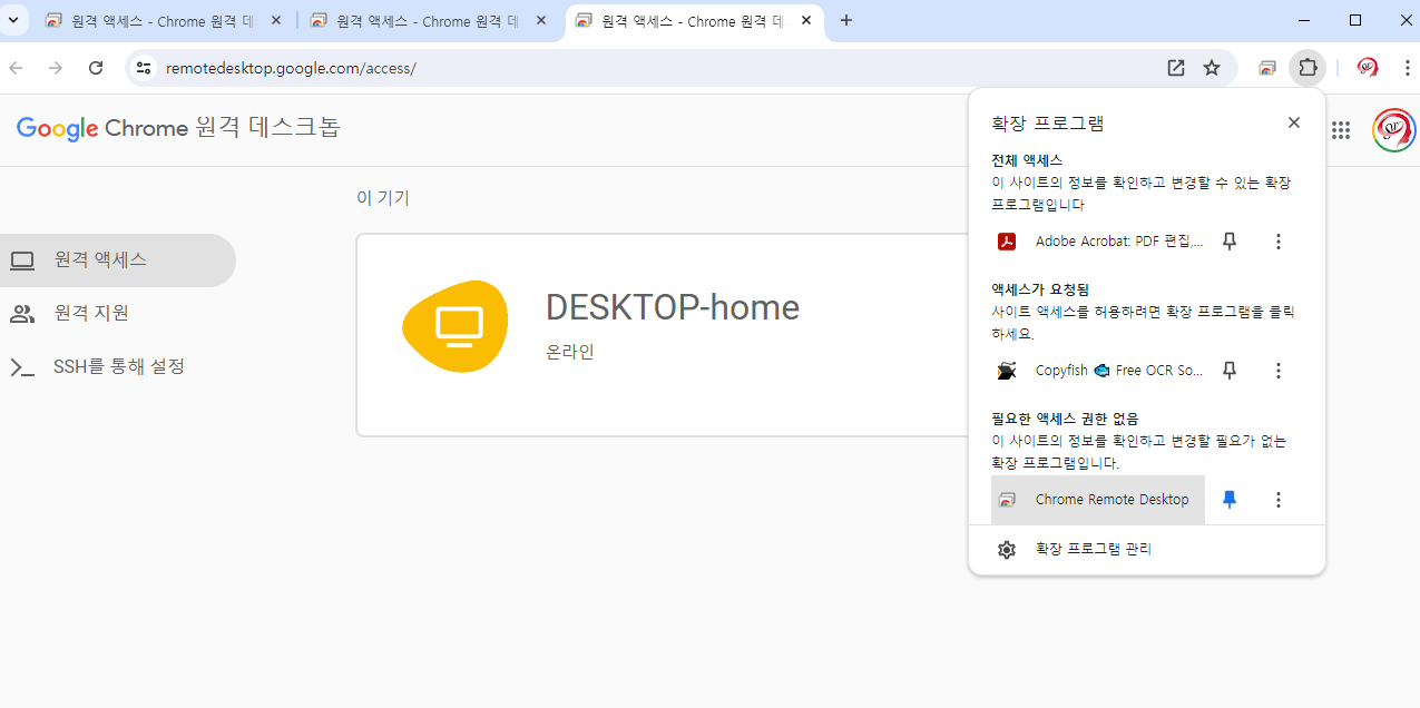 3. 크롬 상단 확장 프로그램 선택 : chrome Remote desktop