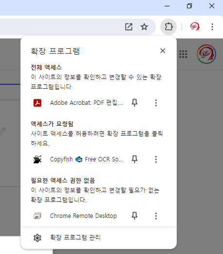 크롬 상단 > 확장프로그램 선택