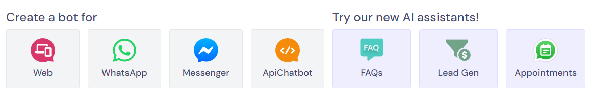 - 대시보드에서 "Create a Chatbot" 버튼을 클릭하여 새로운 챗봇을 만듭니다.