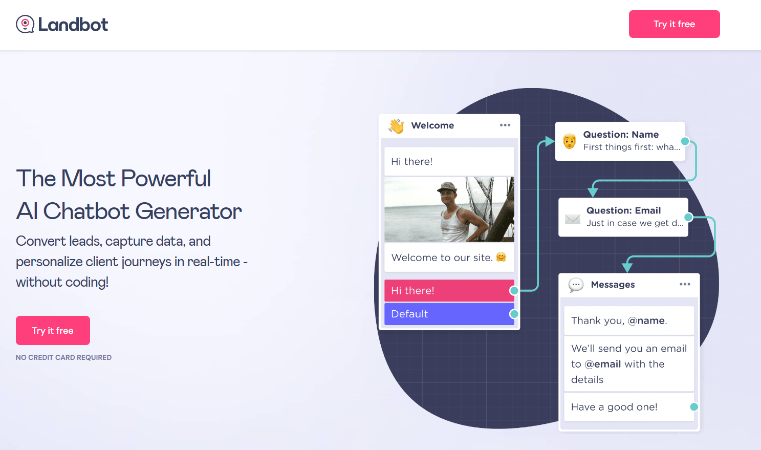 Convert more with the most powerful no-code chatbot builder. Capture lead data, and personalize web journeys in real-time with Chatbots. Intuitively. Without code.