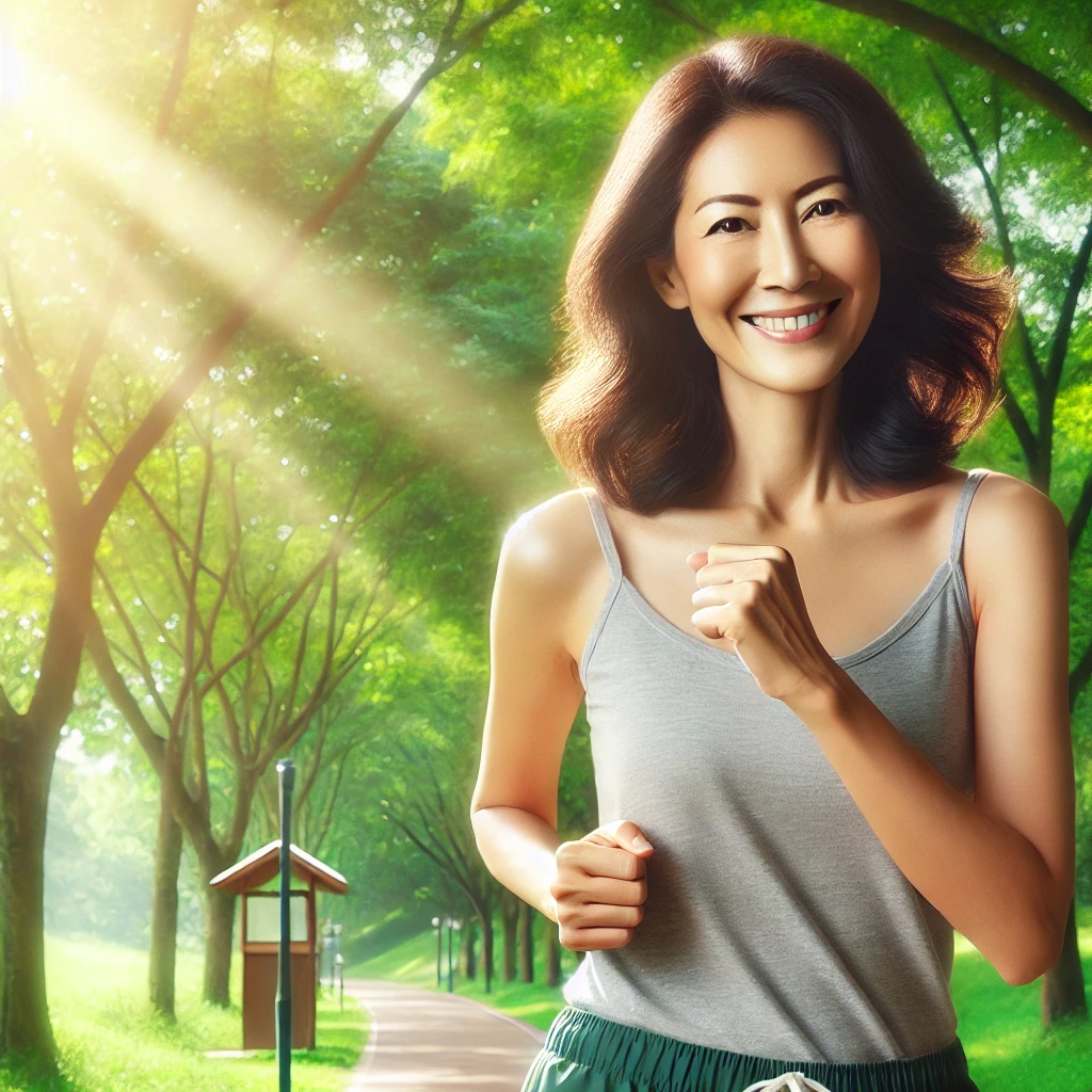 키워드: 성인병 방지, 건강한 생활, 50대 여성이미지: 건강한 생활을 상징하는 이미지 (예: 활기찬 중년 여성의 이미지, 자연 속에서 운동하는 여성)