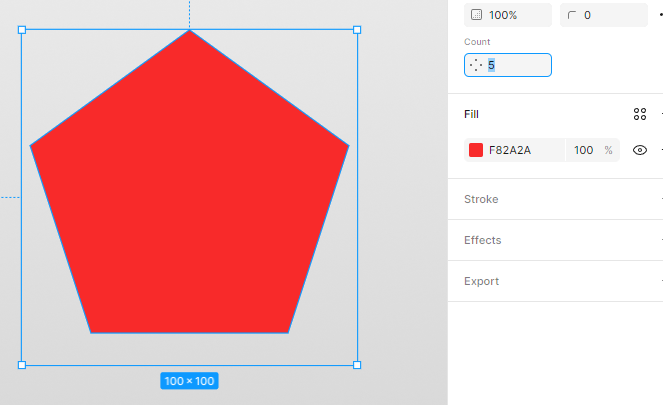 - 캔버스에서 위치를 선택하고 드래그하여 다각형을 만듭니다. 모양의 치수는 개체 아래에 파란색으로 표시됩니다.