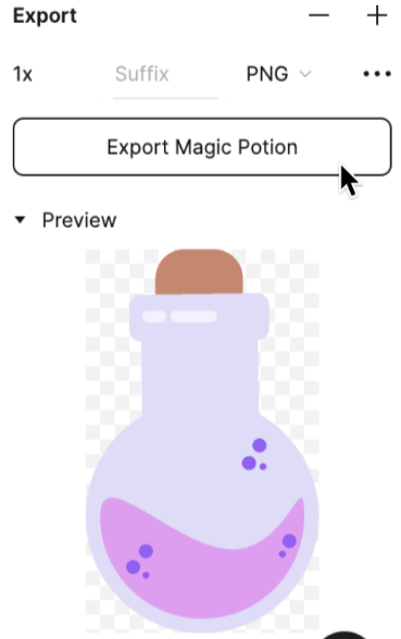 일러스트레이션을 내보내려면 "Magic Potion" 레이어를 선택하고 오른쪽 사이드바의 내보내기 설정을 사용하여 디자인을 내보냅니다.