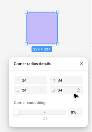- 클릭하세요 모서리 반경 패널을 열려면 독립 모서리 아이콘을 클릭하세요 .