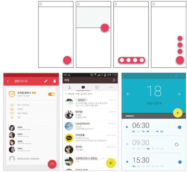 - 플로팅 버튼은 화면 일부를 차지하지만, 필요할 때만 나타나는 숨김 메뉴로 응용하면 공간 활용이 효율적이다.
