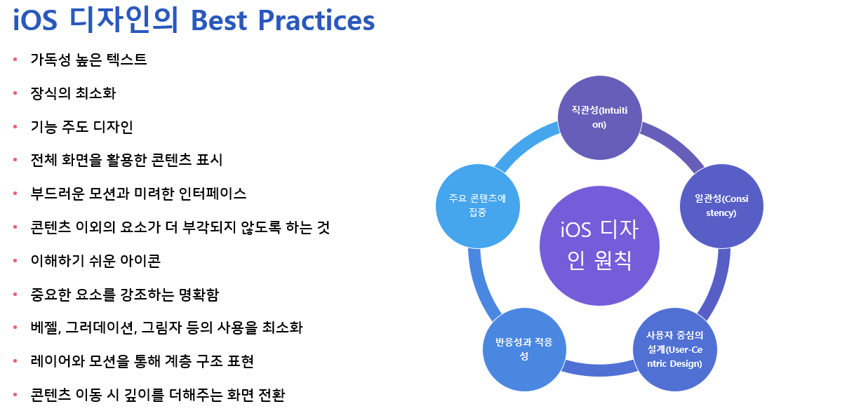 - iOS 디자인은 플랫폼의 기본 인터페이스와 일관된 사용자 경험을 제공해야 한다.