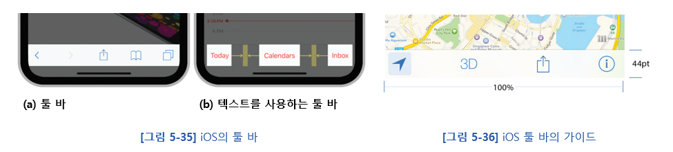 화면의 하단(또는 상단)에 위치하여, 현재 화면에서 사용할 수 있는 주요 작업을 제공하는 iOS의 인터페이스 요소이다. 도구 모음은 사용자와의 상호작용을 간편하고 직관적으로 만들기 위해 설계되었다.