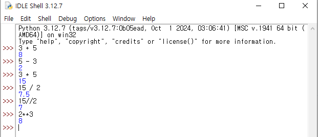 2) IDLE에서 간단한 계산을 수행 해 보자.