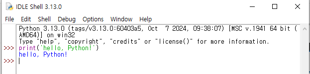 IDLE 창의 >>> 로 시작하는 대화형 인터프리터 창