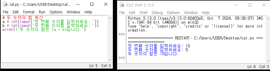 파일 이름을 cal.py로 저장.