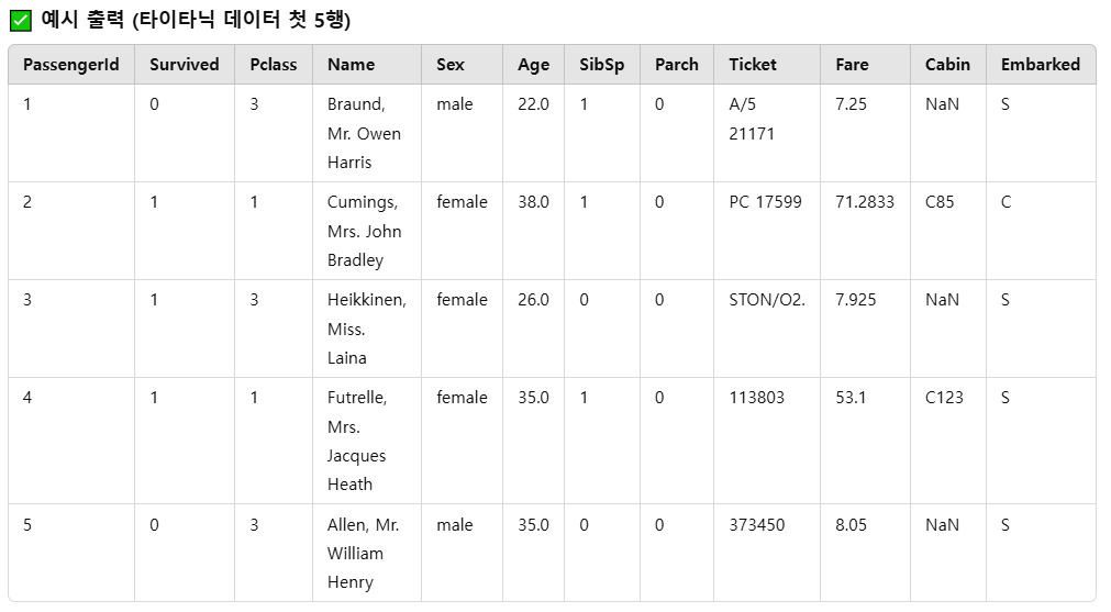 print("데이터프레임 첫 5개 행:")