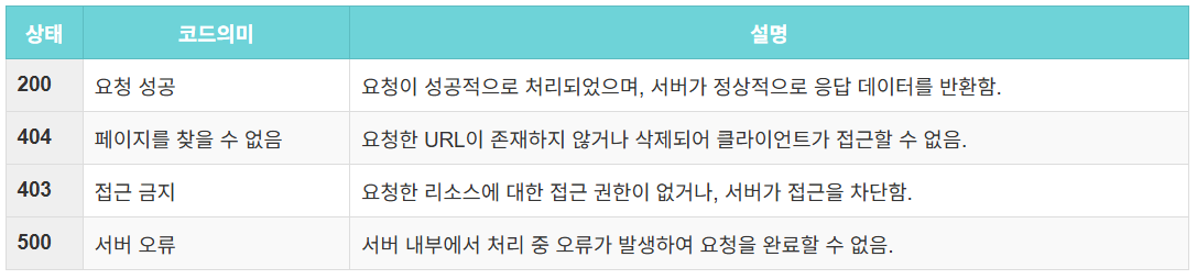- HTML 응답(Response) : 요청받은 서버가 웹 페이지의 HTML 데이터를 반환한다.