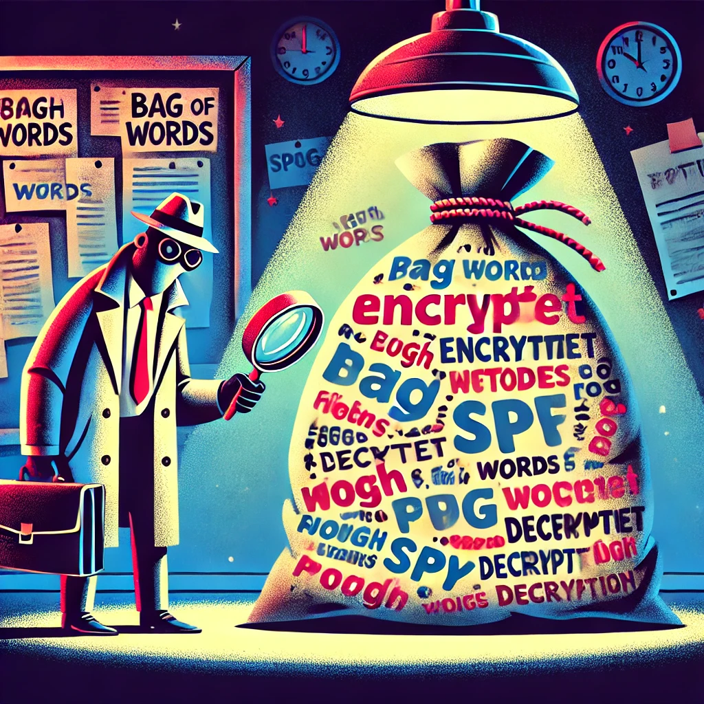 어느 날, 스파이들이 사용하는 암호 메시지를 해독해야 하는 상황에 놓였다고 상상해보자. 메시지는 온갖 단어로 이루어져 있지만 그 안에 숨겨진 패턴을 찾아야 한다. 이때 우리가 사용하는 도구가 바로 "Bag of Words"이다. "Bag of Words"는 단어를 '그냥 모아놓은 주머니'처럼 생각하는 기법으로, 단어가 몇 번 사용되었는지만 세는 아주 단순하면서도 강력한 방법이다.