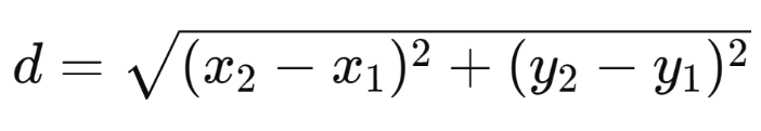 #math.sqrt 함수를 사용하여 두 점 간의 유클리드 거리를 계산한다.