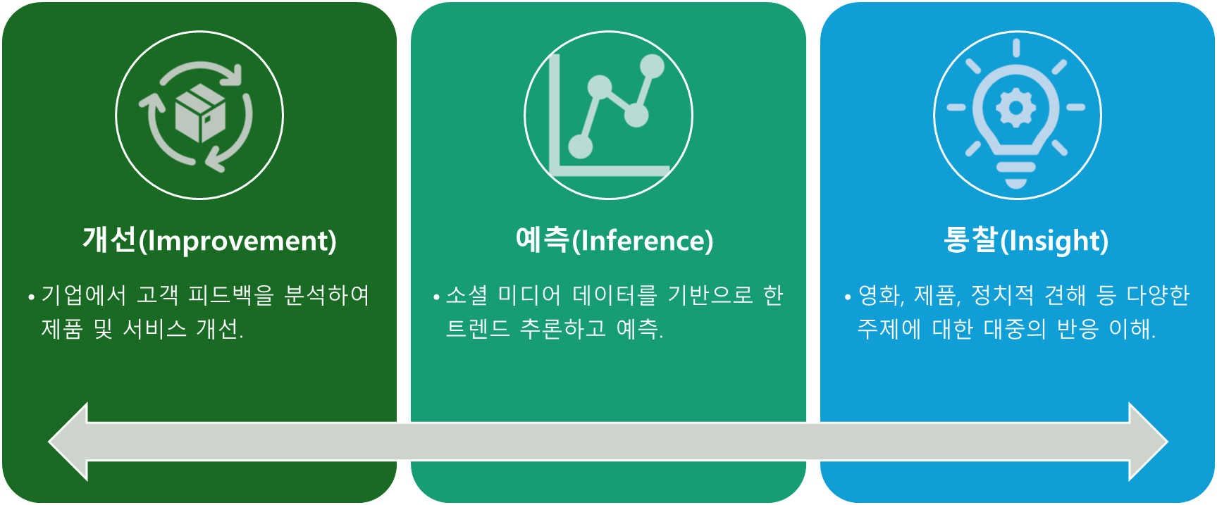 수많은 리뷰와 댓글에는 사람들이 느끼는 감정과 의견이 숨겨져 있습니다. 이러한 데이터를 분석하면 단순히 긍정적이거나 부정적인 감정을 넘어 소비자 트렌드, 시장 변화, 제품 개선 방향 등 유의미한 인사이트(insight)를 얻을 수 있습니다. 감성 분석은 이러한 텍스트 데이터를 구조화하여 기업의 의사결정을 지원하고, 새로운 비즈니스 기회를 발견하는 강력한 도구로 자리 잡고 있습니다.