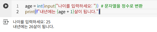 print(f"{name}님은 {age}살이며, 내년에는 {age + 1}살이 됩니다.")