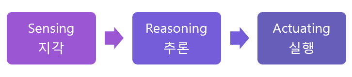 예: 스마트워치가 심박수를 측정하거나, AI 스피커가 "불 꺼줘"라는 음성을 인식함. - Reasoning (추론 단계): 수집된 정보를 분석하고, 문맥과 상황에 따라 적절한 판단을 내리는 단계이다.