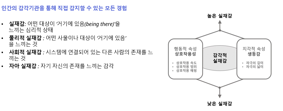 - 자극이 얼마나 사실적이고 풍부한지에 따라 실재감이 달라진다.