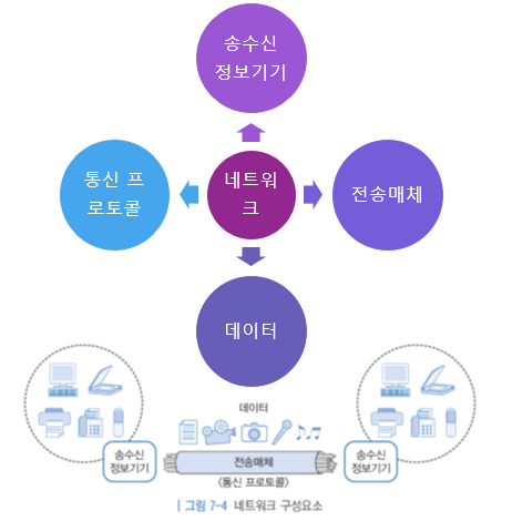 - 데이터(Data): 네트워크를 통해 전달되는 실질적인 정보로, 텍스트, 이미지, 음성, 영상 등 다양한 형태로 존재한다.