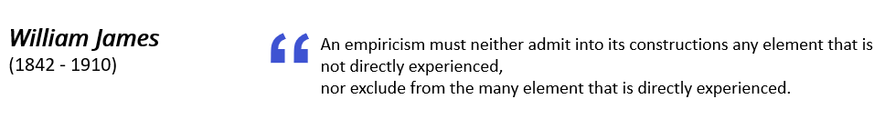 “경험주의는 직접 경험되지 않은 어떤 요소도 그 구성에 포함해서는 안 되며, 직접 경험된 많은 요소들 가운데 어떤 것도 배제해서는 안 된다.”