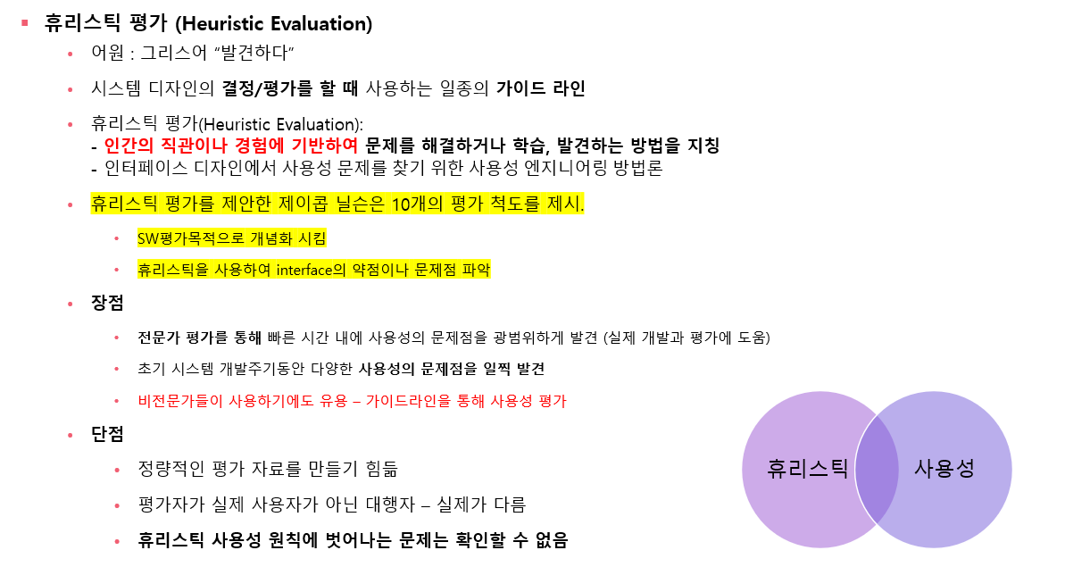 휴리스틱 평가(Heuristic Evaluation)는 사용성 테스트의 일종입니다.