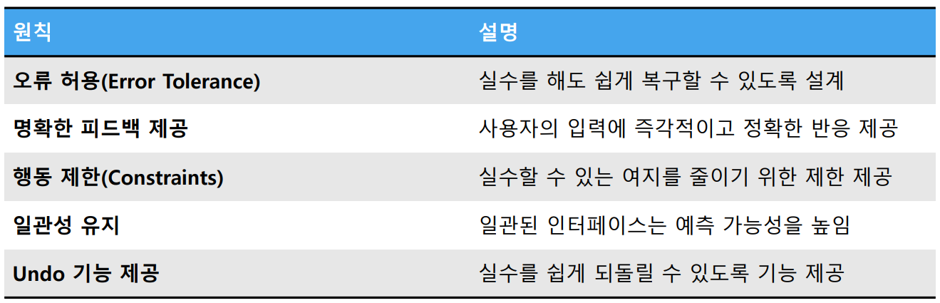 - HCI 설계의 목표는‘오류 없는 시스템’이 아니라, 오류를 용인하고 이해시키는 시스템’이다.
