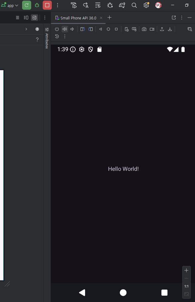 - Gradle 빌드가 끝나면 앱이 에뮬레이터에 설치되고 실행된다.