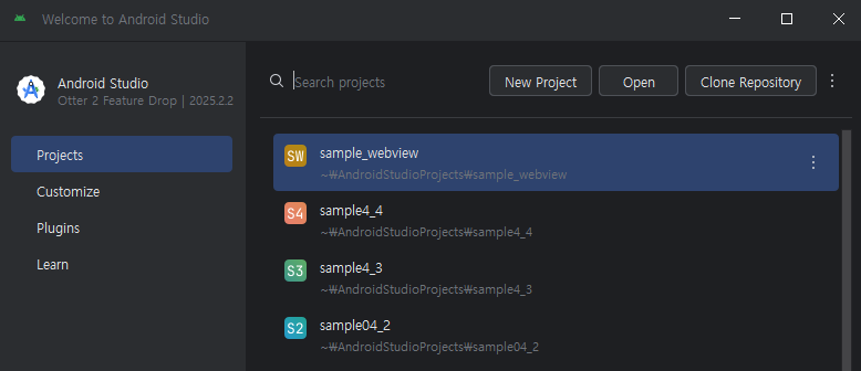 - Android Studio 시작 화면에서 New Project를 선택한다.