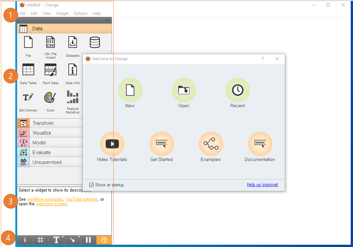 오렌지에서는 위젯을 통해 다양한 프로그래밍 작업을 쉽게 할 수 있다.