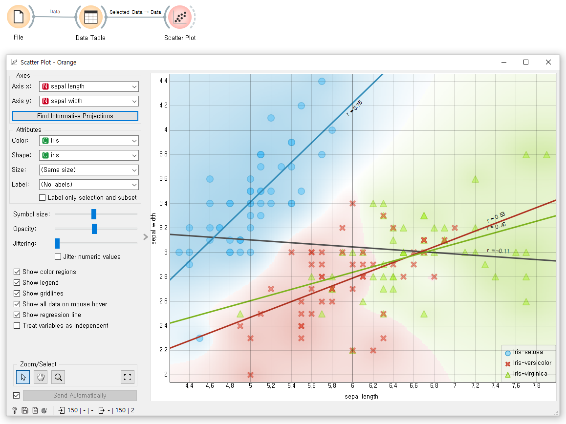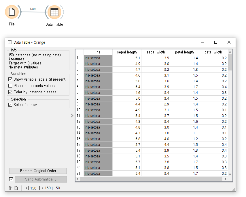 - 기능을 수행하는 아이콘들로 위젯을 불러와 연결하는 과정을 통해 데이터 처리, 시각화, 모델 적용 등 분석 평가를 할 수 있다.