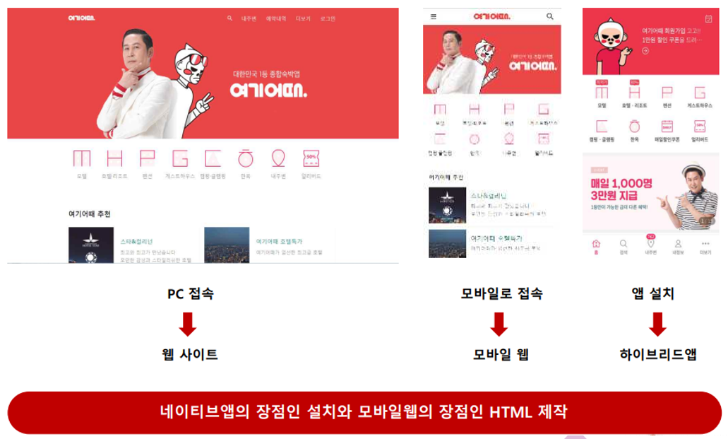 | 개발 기술 | HTML, CSS, JavaScript | HTML, CSS, JavaScript, 네이티브 셸 사용 |
