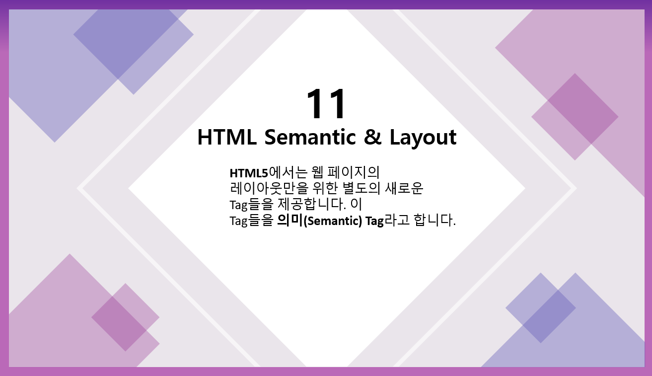 HTML5에서는 웹 페이지의 레이아웃만을 위한 별도의 새로운 의미론적 Tag들을 제공합니다.
