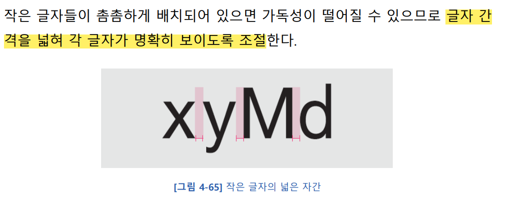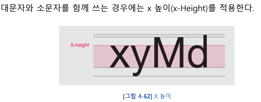 폰트는 디지털 기기 에서도 인쇄 디자인의 원칙을 준수하는 것이 좋다. 앞으로 설명할 문자 영역은 나중에 개발자에게 전달할 결과물에서 반드시 준수해야 한다.