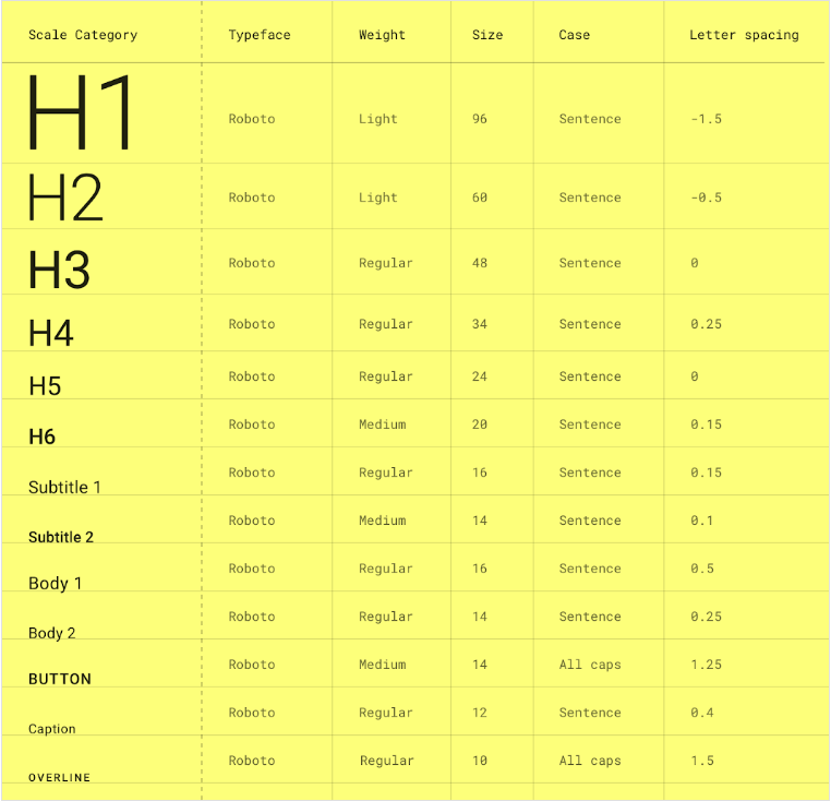 https://m2.material.io/design/typography/the-type-system.html#type-scale