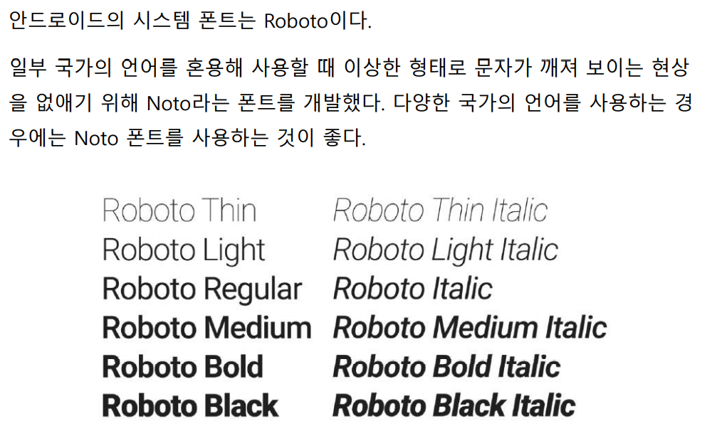 Android는 Roboto를 시스템 폰트로 사용하고 있습니다. (삼성: 삼성고딕)
