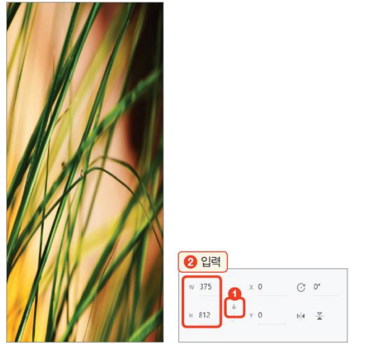 - 옵션 창에서 종횡비 잠금( )을 클릭해 가로세로 비율 일치를 해제한 후, 이미지 크 기를 아트보드 크기에 맞게 조정